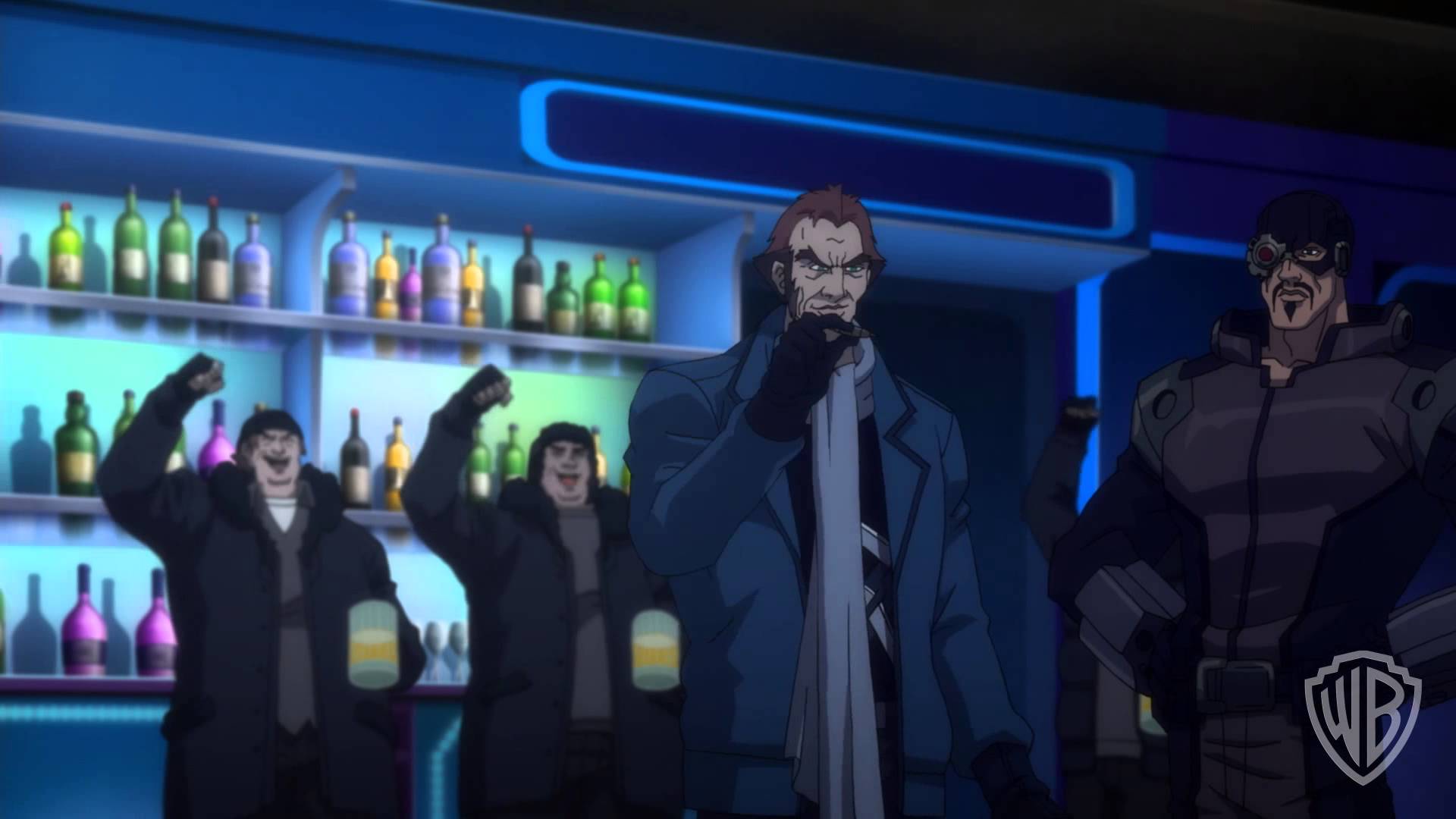 A versão animada envia o grupo numa missão sem quaisquer escoltas (nada de Rick Flag ou de Katana), e o restante elenco sempre me pareceu mais interessante. Para além dos três já referidos nos pontos anteriores, o grupo completa-se com Killer Frost, King Shark, Black Spider e KGBeast. E, sejamos francos, existe algum paralelismo entre algumas destas personagens e as da versão live action: KGBeast é a contraparte de Slipknot apenas no facto de que serviu apenas para desafiar Amanda e pagar com a vida, e King Shark é em aparência parecido com Killer Croc. Black Spider permaneceu durante um pouco mais no filme, mas a sua personalidade misteriosa impediu-o de desenvolver antes de conhecer o seu fim. Killer Frost e King Shark conseguem ter bastante química desde o início, quase como que sugerindo um possível interesse amoroso entre ambos. Estas duas personagens estão bastante fortes ao longo do filme, interagindo com todos os restantes membros do grupo e ainda abrilhantando as cenas com o seu sentido de humor.