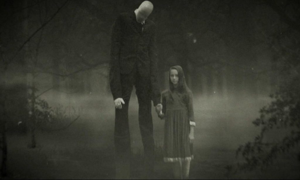 Slender Man já apareceu em vários contos populares, nomeadamente aqueles ligados ao desaparecimento de crianças e outras pessoas que se perderam nos bosques. Diz a lenda que a criatura além de conseguir apagar a memória das suas vítimas, é também capaz de criar alucinações perturbadoras naqueles que  cruzarem o seu caminho.